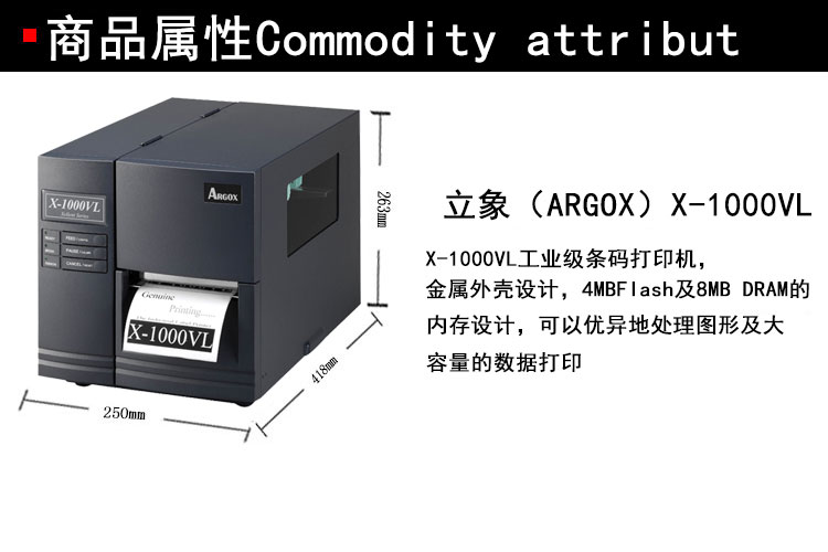 立象X-1000VL是老牌的经济型工业级条码打印机,它采用全金属外壳设计;交换式电源的使用,使它适应用电环境恶劣的工业应用;并全面提升打印头制程及全新的热度控制,在兼顾打印质量最佳化的同时,更加有效提升打印机的使用寿命,是一款性价比极高的经济型条码打印机。